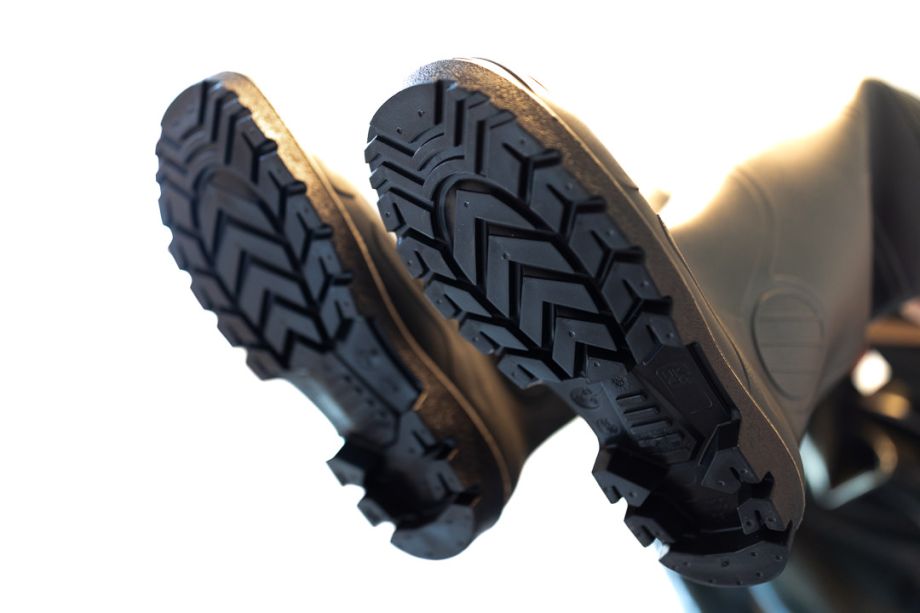 Sicherer Halt: Robuste Stiefel mit griffiger Sohle für schlammigen Untergrund.