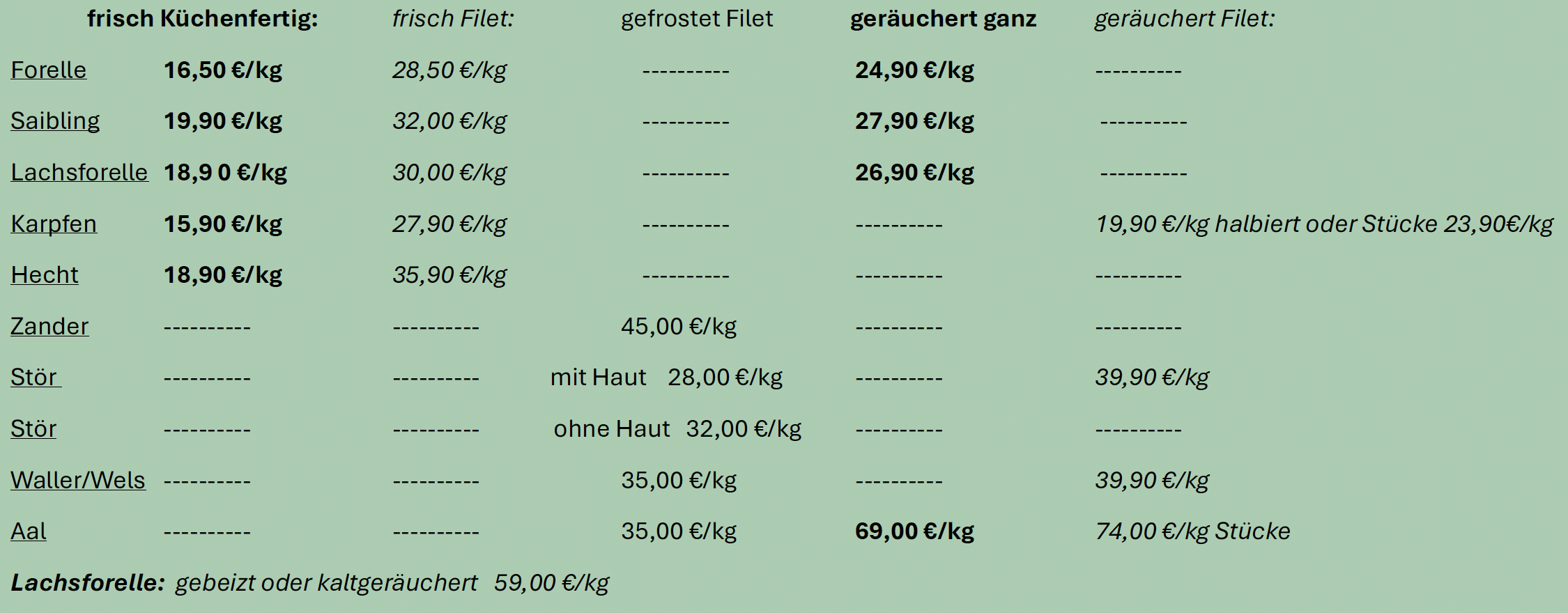 Frischfisch – küchenfertig oder als Filet: Forelle, Lachforelle, Saibling, Karpfen, Hecht, Zander, Stör